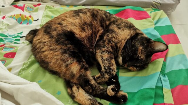 前回の皮下点滴から5日ほど経ったので、黒猫ココロに皮下点滴を実施。