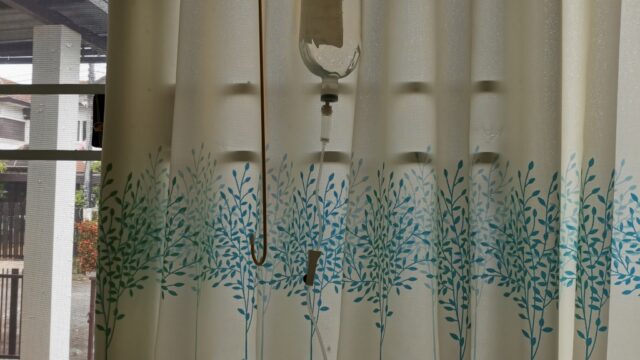 今回も輸液の流れは絶好調で、調子に乗って320ml位入れたら注射後から液漏れ発生!