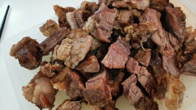スジ部分も多いけど普通の肉部分も有るので圧力鍋の高圧時間をもう少し減らしても大丈夫な気がする。