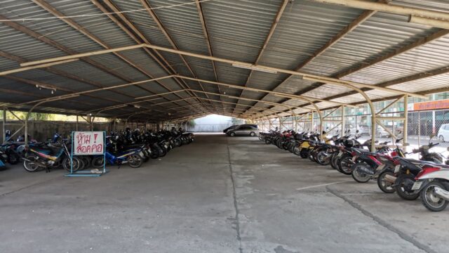 正直バスターミナルの端っこにバイク駐車しておいても問題なさそうだけれど、1日10バーツ程度のお金でリスクを負うのも馬鹿らしいので別のお店を探します。