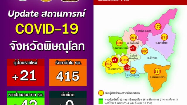 ピサヌロークの新型コロナ新規感染者は21人。正月の帰省後に増えると思われる。