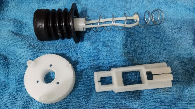 補修部品の形状だと少しリターンスプリングのブリセット荷重が増えそうだけど組めれば問題ないね。