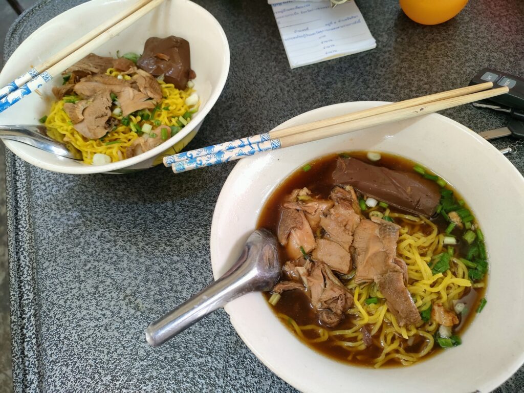 薬局とかの買い出しのついでに市内で昼食。アヒル肉の麺屋さん。一杯50バーツに値上げされて悲しい。