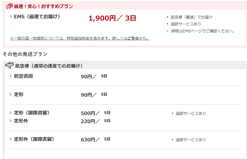 EMSに対し、料金1/4くらいなので急ぎでなければ使っても良いと思う。