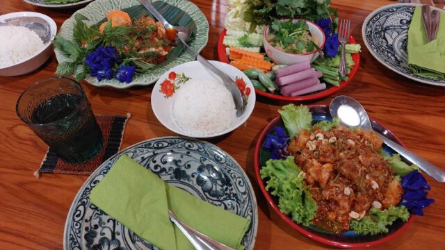 お店は料理ゾーン?とケーキゾーン?に分かれているみたいですが詳細は不明。料理はタイ料理がメインでエアコン部屋とか考えると高くは無いらしい。