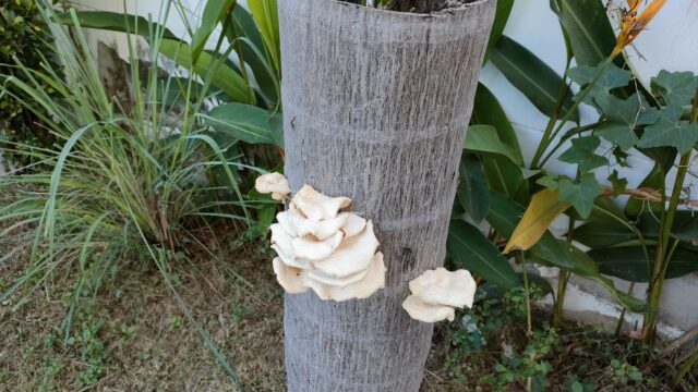 関係無いが切り倒したパームの幹から色々な菌類が出ていてキモイ。