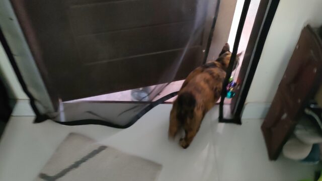 点滴を終えたプルさんは猛ダッシュで下に降り、キッチン扉からお外に脱出致しました。
