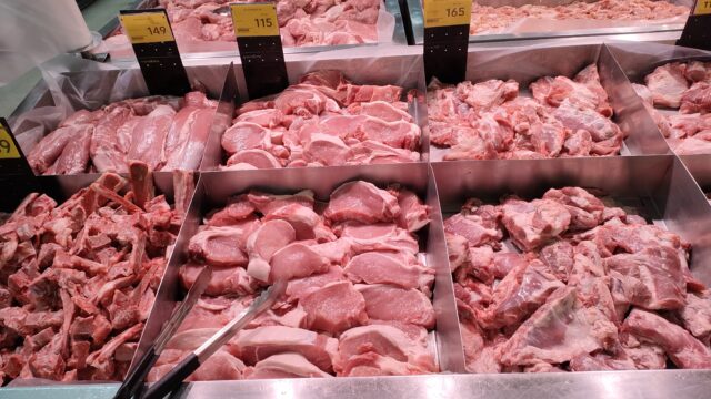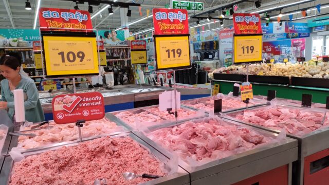その代り豚肉は価格が下がっていて豚もも肉は1kg119バーツとか安めになってます。