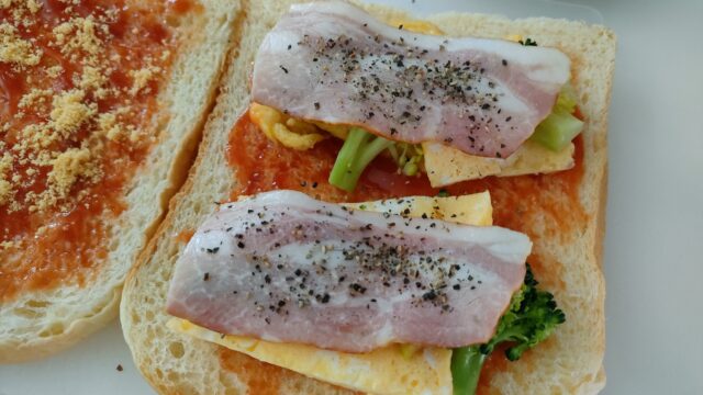久しぶりに昼ご飯としてバウルーでホットサンドを作成。もう何年もチーズを買っていないので粉チーズで代用したけどそれなりにチーズ風味がして良き。ベーコンの上にかけた黒コショウも良かったよ。