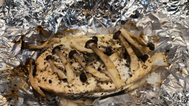 ホイル包み焼きって奴ですね。アルミホイルが必要なので準備にひと手間掛かるけれど、調理中は逆に手間が減るので嫌いじゃない。そして味も良いと思う。