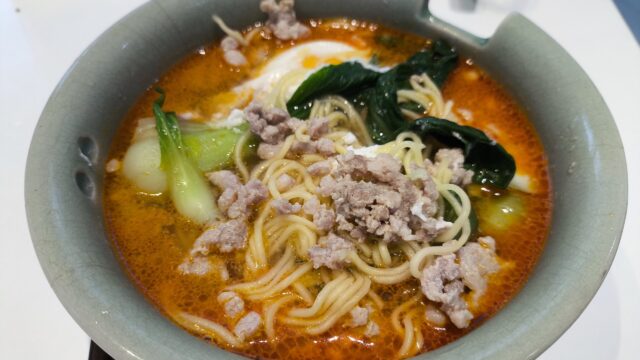 1食分しかなかったので嫁氏に作って食べさせた。豚ひき肉、卵、青梗菜を入れたので本格度がUPした気がする。