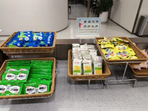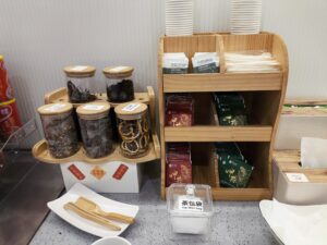 飲料(水・お湯)は無料なので、ペットボトルとか水筒あれば水の確保はOK。