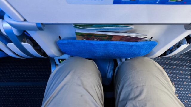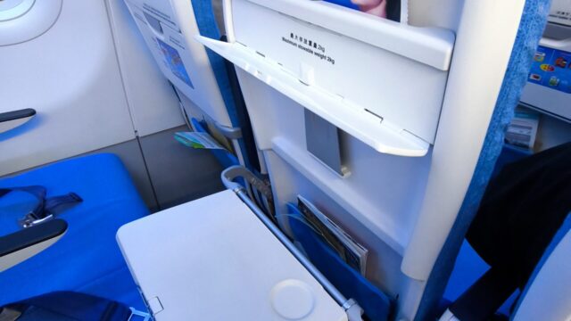 そしてエコノミークラスの座席ですが、リクライニング機能が廃止されているみたいで、リクライニングさせるボタンが無いです。