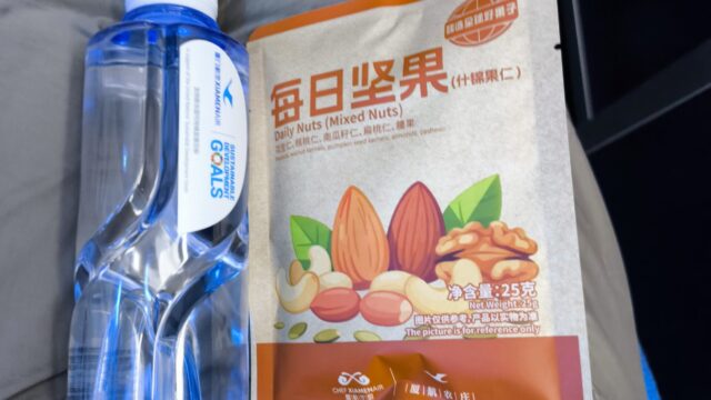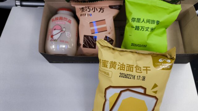バンコク行きのMF843便は21:30出発なので、食事は軽食のみとなります。