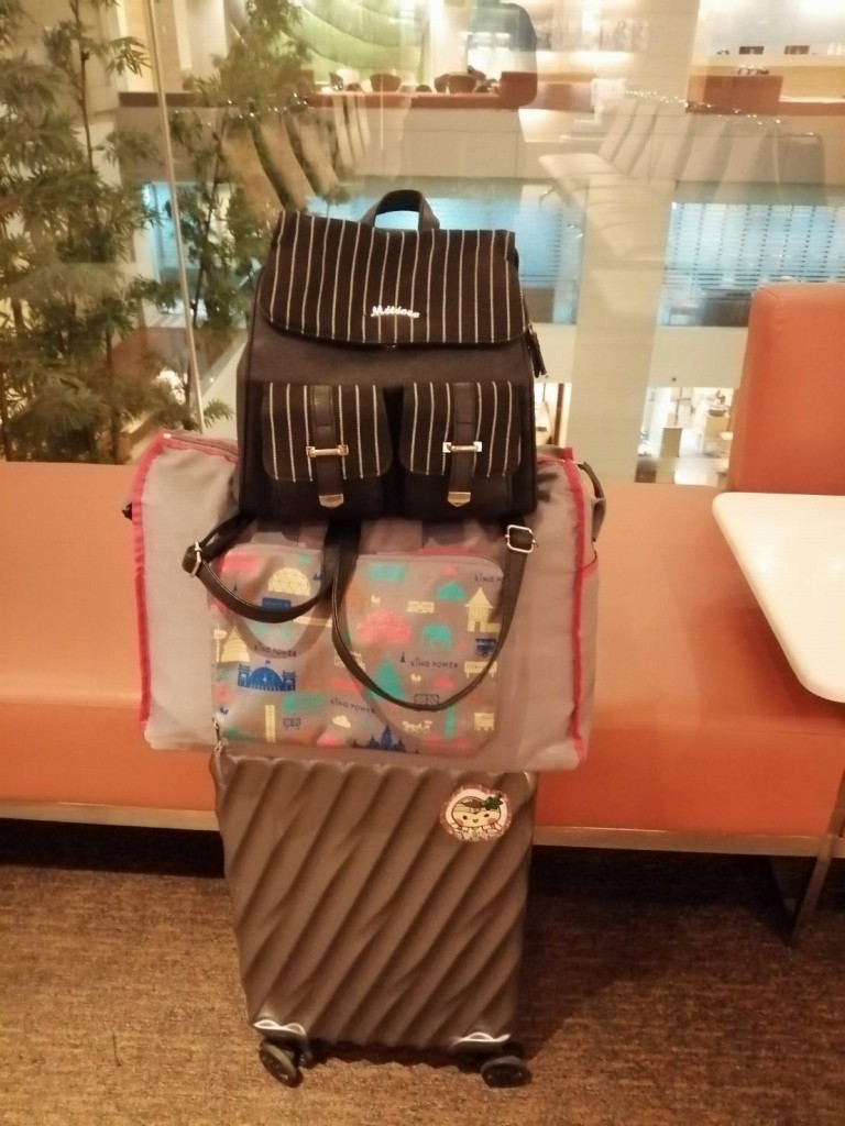 行きに対して、写真中央の荷物が増えましたね。頑張れば預け荷物無しでLCCに乗れそうだけれど、お土産で貰った水モノが引っかかるのでムリだそうです。