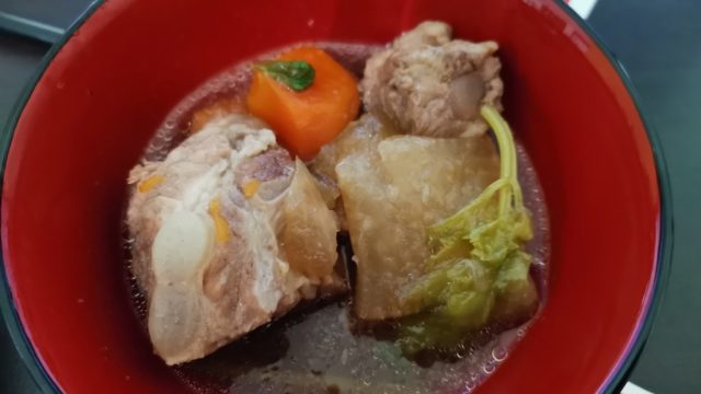 スーパーでアバラ骨肉と大根を買ったので、圧力鍋で骨スープ作成。