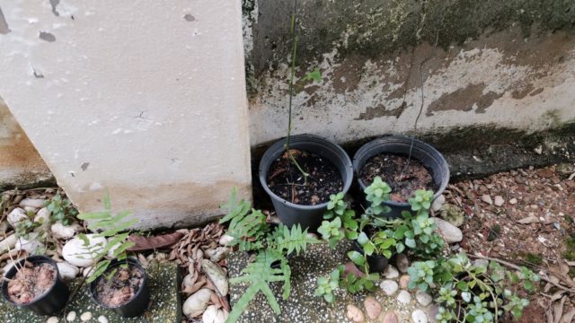 先週?だったか嫁氏が作った植物ファームですが、今日見たら何者かに葉っぱを食べられて丸坊主になってた。
