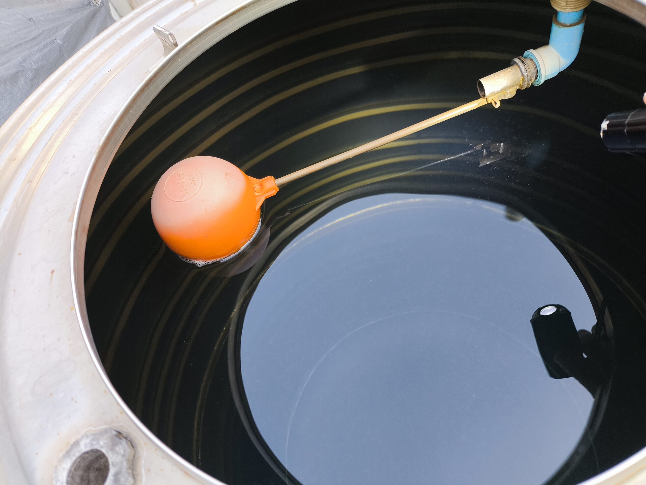 まあ、給水車から水を入れて貰えばヤモリは水面に浮いてくると思うのでとりあえずタンク洗浄はこれでOKでっす。