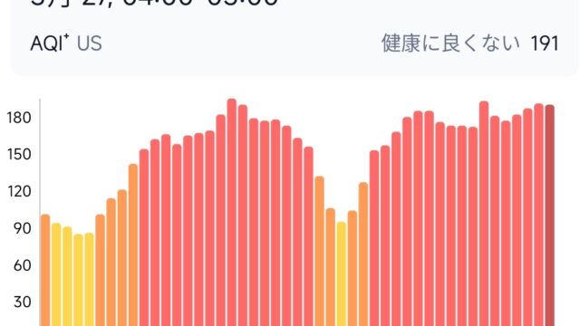 気温が低めな午前中とかに窓を開けて過ごしたい所ですが、大気汚染も深刻でAQI190(健康に良くない)とかです。