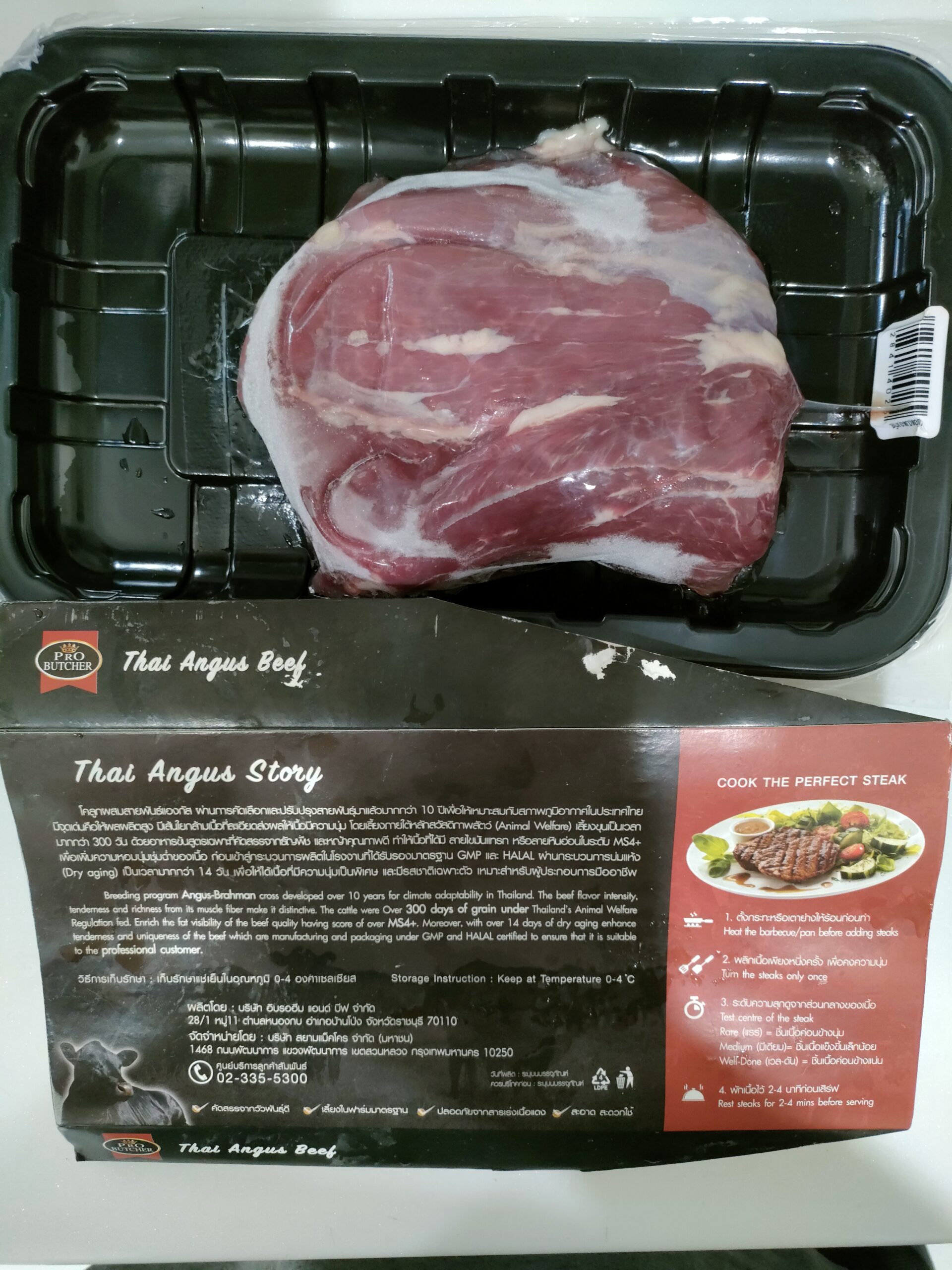 恐らく定価の4割引き位で、お値段69バーツのタイ産アンガス牛です。多分300gくらいかな?