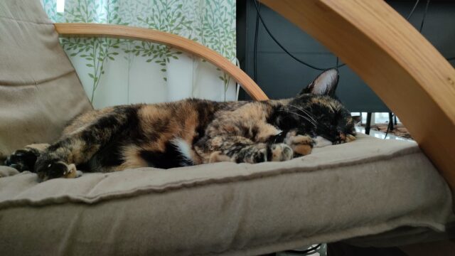 一緒に昼寝して大量のオシッコした後は少し嫌そうに「腎臓サポート」を食べてくれた。