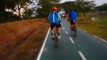 街中は明るいんですけど、路上駐車や道路の凸凹が多くてスピードは出せません。そのかわりに疲れもしないので、1時間半ほど自転車漕ぎました。出発時間が早かったからサイクリング終盤でも日が出ませんね。