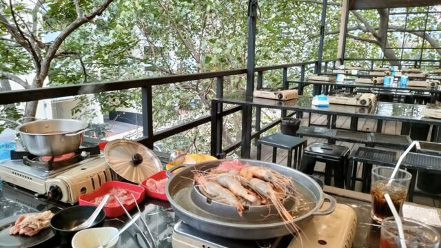 ブッフェ形式で料金は1人350バーツ位?まだ嫁氏から家計簿情報が来てないので詳細不明。追加で鍋(50バーツ)も頼んだみたい。