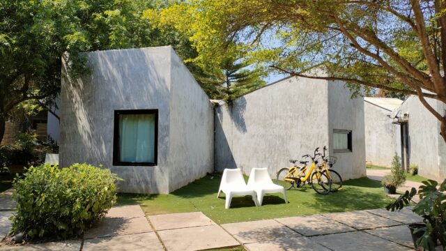 ホテル側の外観はこんな感じ。ホテルの部屋は変則的なY字形でプライベートスペースに中庭がある感じです。寝室は分かれてるけど中庭と洗面所は隣の部屋とくっついている。