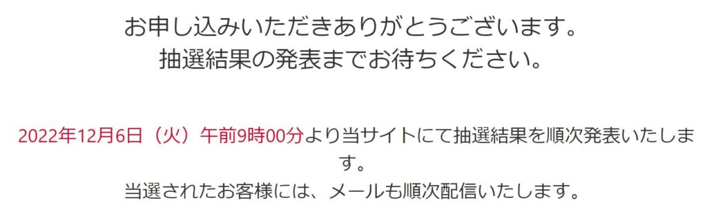12月6日に当選結果発表なので楽しみに待ちましょう。