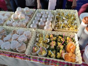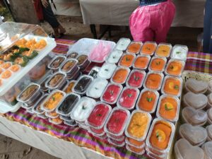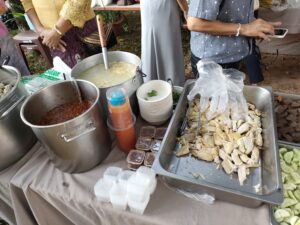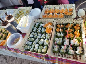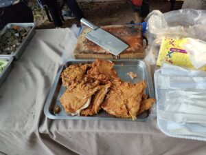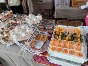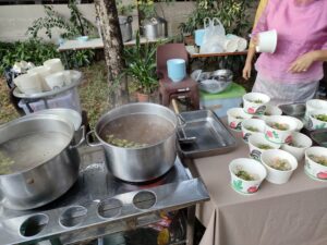 朝7時59分から結婚式のヒーホーなので、駐車場近くに食事ゾーンが出来ています。
