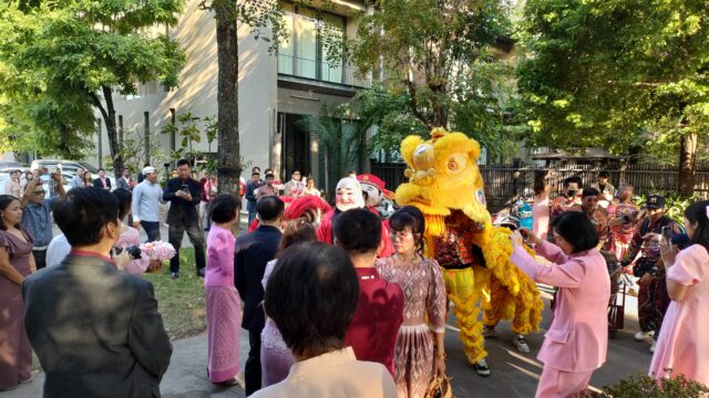 中華系タイ人なので先頭に獅子舞チームが居てなかなか騒がしいけれど華やかで良いね。