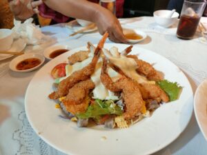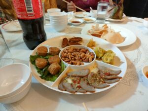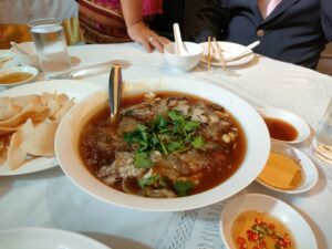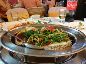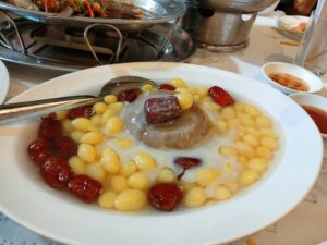 パーティの料理は高級中華?でふかひれスープとか出てきました。凄く美味しかったけれど、結婚式の時に結構食べていたので、沢山は食べられなかった。