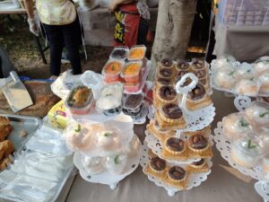 東屋の一つは出張カフェが来ていて本格的な飲み物が飲めました。あまりにも人気で11時には在庫切れで閉店してた。