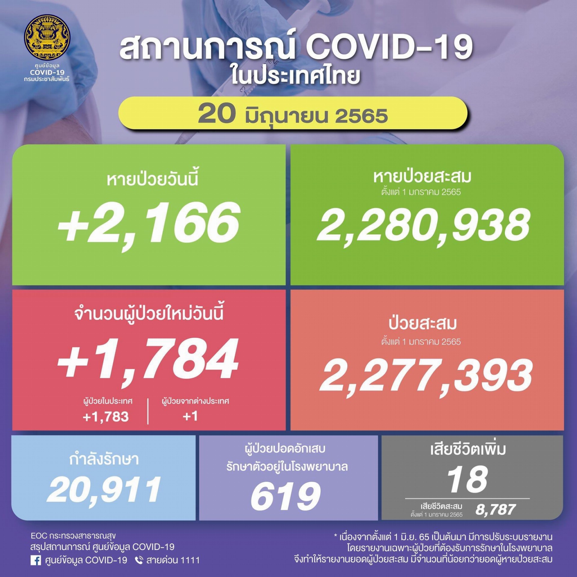 タイの新型コロナ新規感染者は1784人、死者18人。ピサヌロークは新規9人。