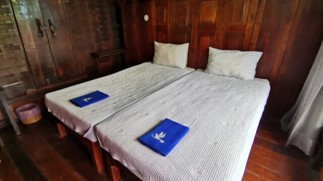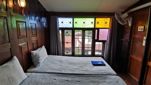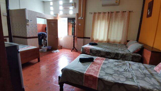 今回の宿泊料金はエアコン付き/トイレなし/朝食付きで1泊423バーツ(約1600円)になります。スタンダード・ツインルーム・共用バスルームですね。