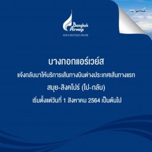 んで、国内航空会社で唯一サンドボックス対応を続ける「バンコクエアウェイズ」が8月1日以降にサムイ-シンガポール(往復)の直行便を運行するみたいです。