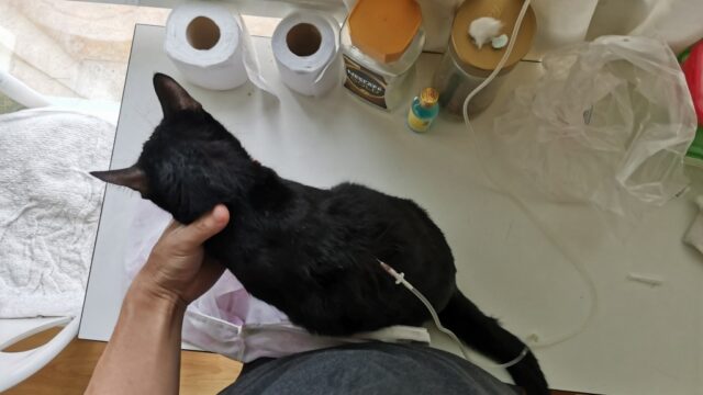 昨日は失敗した皮下点滴ですが今日は無事に成功。250ml注入した。