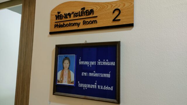 昨日確認した健康診断セットをお願いし料金600バーツとパスポートを提出。