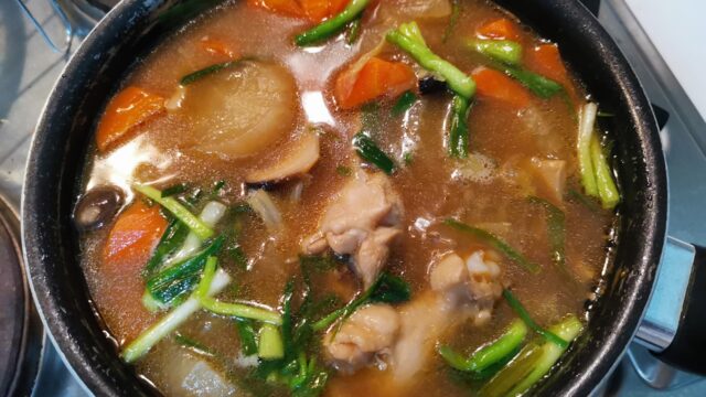 手羽元を使い味噌味の煮物作成。おかずになるように味は濃い目にした。この料理を作り在庫の味噌は無くなったので次に使う時は買わないといけないね。