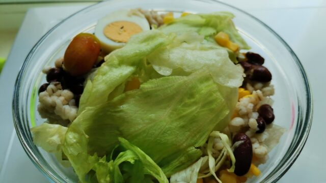 市場で購入したサラダ25バーツ。量的には4人分くらい?俺氏1人で食べると3食分くらいです。賞味期限切れのイタリアンドレッシングで美味しく頂きました。