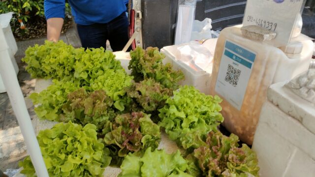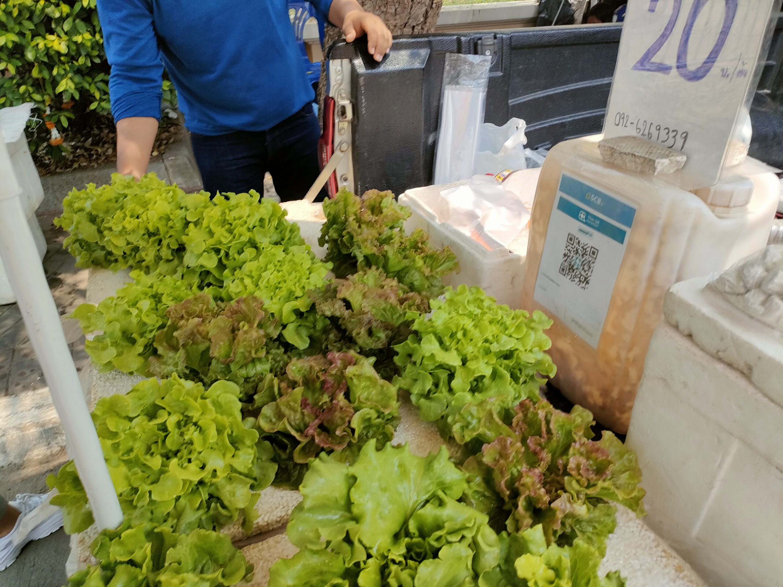 帰りがけに路上の屋台でサラダ野菜を買って帰宅。1株20バーツ(約84円)で3株だと50バーツになる。結構長持ちするし高くも無いので気に入ってるよ。