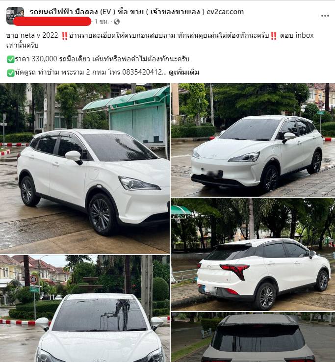 2022年モデル(当時56万バーツ)のNETA V(走行距離4.5万km)の個人売買価格で33万バーツです。そして誰も買ってくれない。