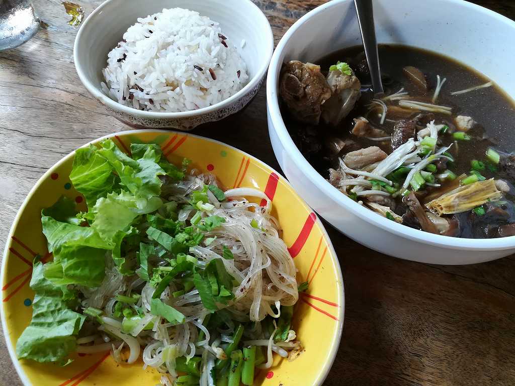 頼んでいるメニューはバクテー(肉骨茶)にゴハンとセンレックです。