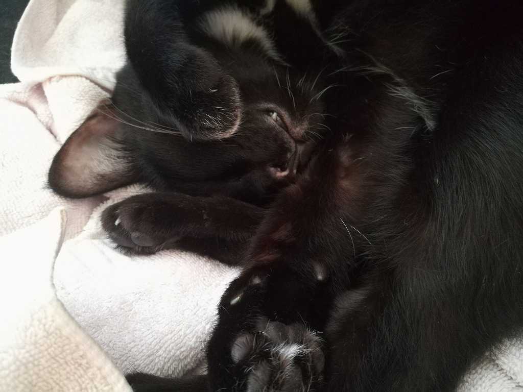 そして家に戻ってから腎臓ケア中の黒猫ココロに皮下点滴を実施。