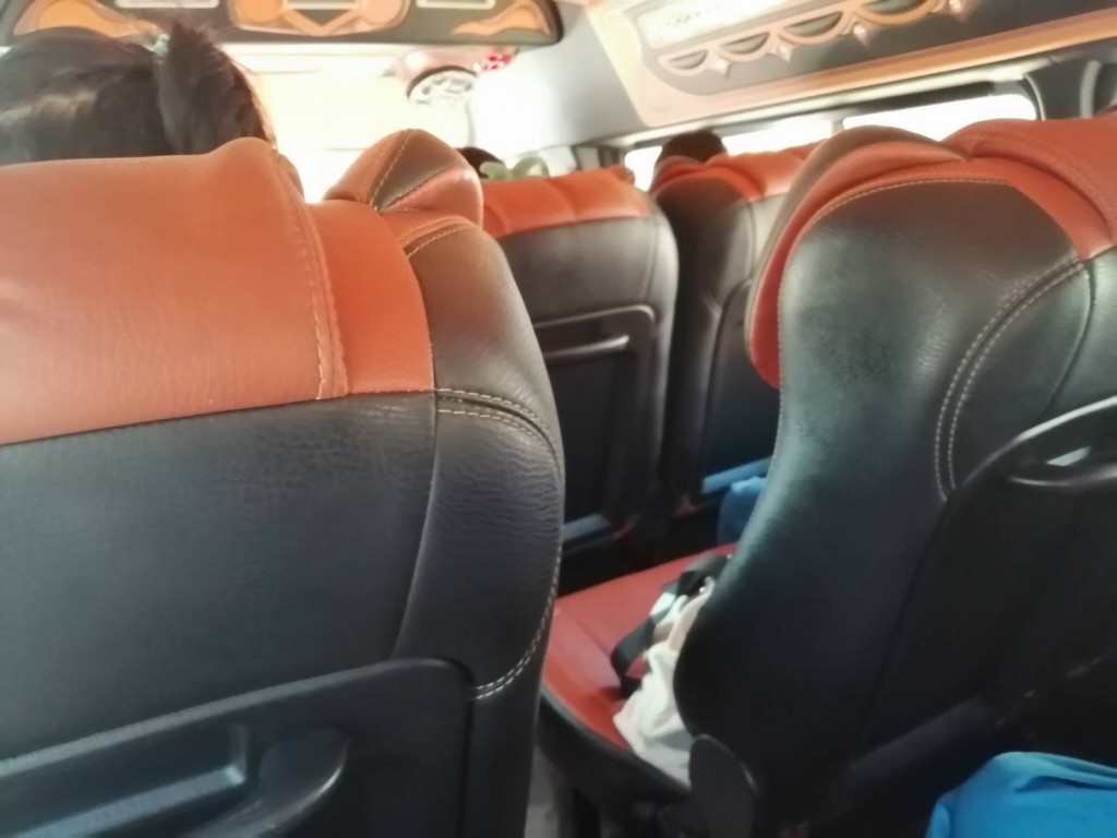 通常だと5列シートの15~17人乗りだけどこの車は4列シートかな?お客さんは8人しか乗っていなかったので広々使えて快適だったみたい。