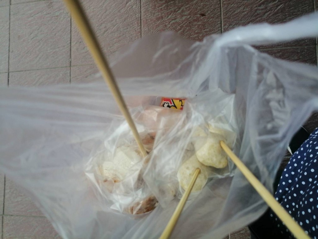 事故の処理でご飯を食べ損ねたので、屋台ゾーンで買い食いの模様。