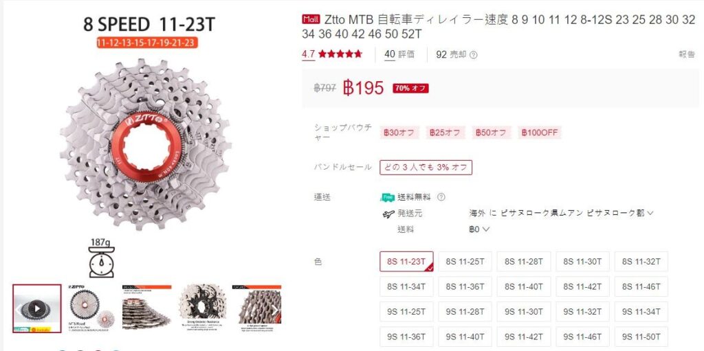 - 8S+ホイール11S対応のセットで4131バーツ(約1.6万円)