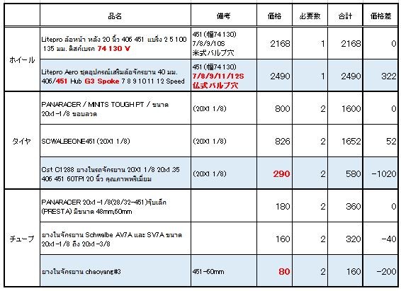 - 9S+ホイール11S対応に良いタイヤとかつけると5957バーツ(約2.3万円)