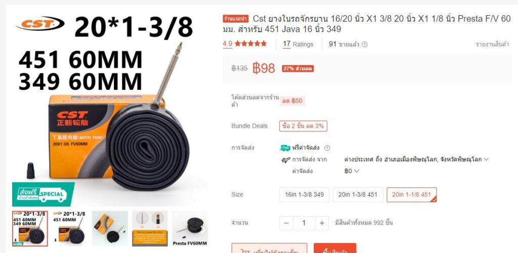 タイヤはちゃんとしたブランド(SCHWALBE、Panaracer)が欲しかったけれど1本800バーツ以上なのでチェンシンタイヤ(Cst C1288)の1本290バーツを選ぶ。