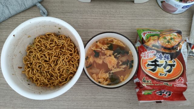 捨てるお湯が勿体なかったので日本で購入した「味の素 クノール 海鮮チゲスープ」も作った
